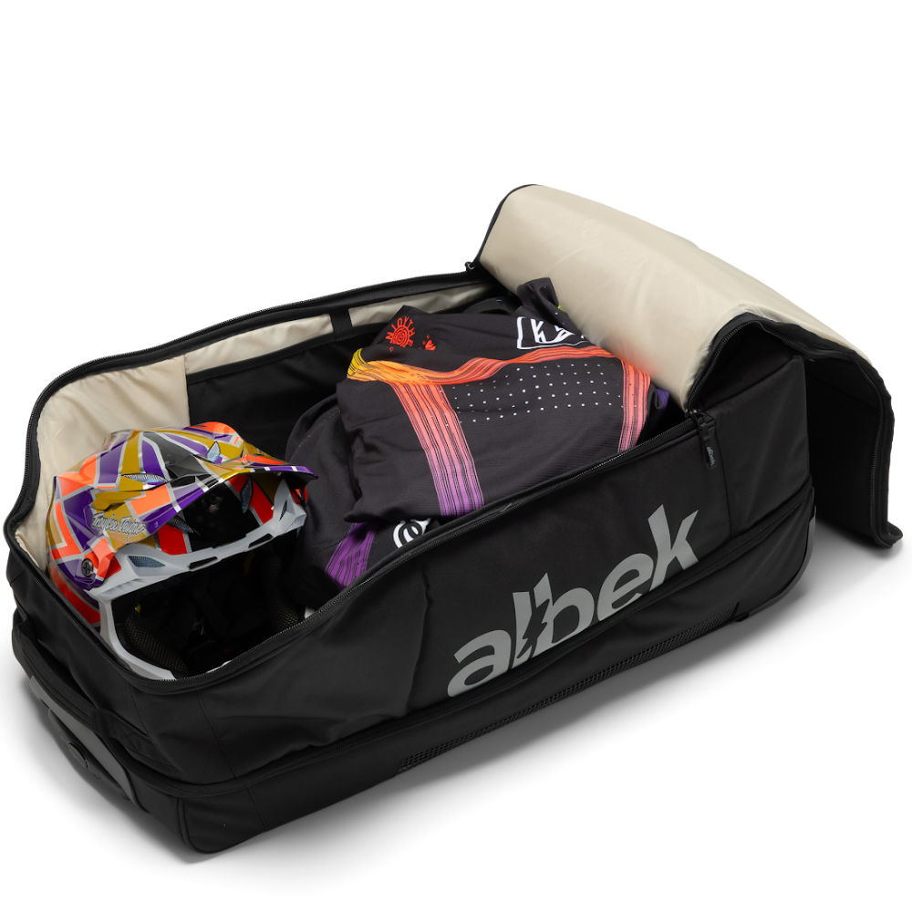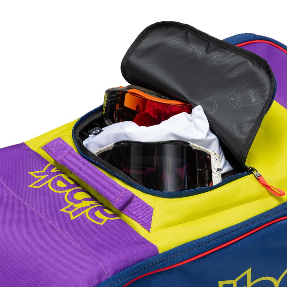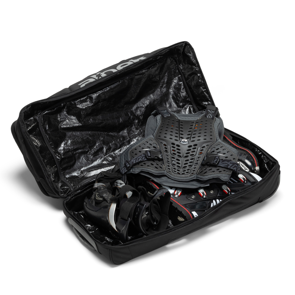 Waterproof boot, knee and protection compartment keeps dirt contained, while the padded helmet zone and integrated goggle vault protect your essentials. The spacious main section fits all your gear, with loads of room to spare for multiple kits.